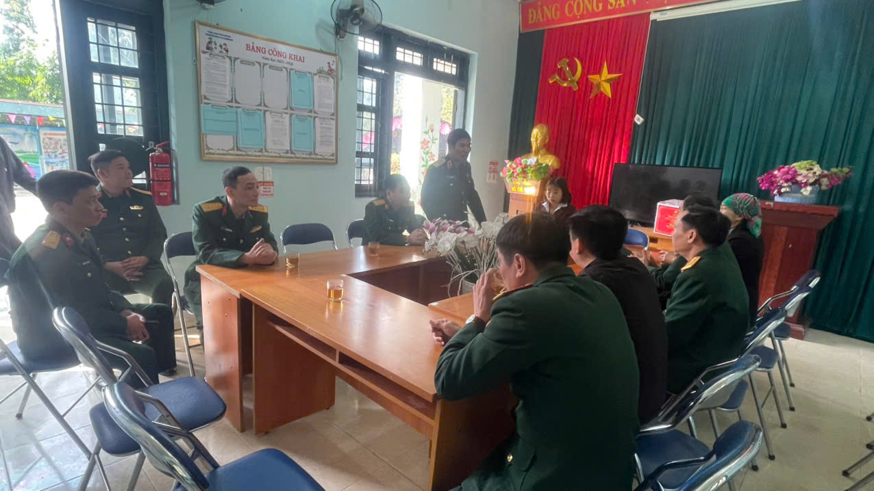 Góp phần kết nối và đưa đoàn thiện nguyện đến với nhà trường là đồng chí Đặng Hồng Quân và đồng chí Dương Anh Chiến cán bộ Đội Sản xuất và Xây dựng cơ sở chính trị số 9. Với vai trò là cầu nối đầy trách nhiệm và nghĩa tình, các đồng chí đã góp phần lan tỏa tinh thần sẻ chia, gắn kết tình cảm quân – dân, mang hơi ấm và sự quan tâm của các đơn vị lực lượng vũ trang đến với cô và trò nơi vùng biên giới. Dẫn đầu đoàn công tác đến thăm và trao tặng quà cho nhà trường là Thiếu tướng Đào Minh Đạo – Phó Cục trưởng Cục Tài chính, Bộ Quốc phòng. Cùng tham gia đoàn có Đại tá Vũ Trường Giang – Phó Chủ nhiệm Hậu cần – Kỹ thuật Quân khu 2 và Đại tá Đinh Minh Khuê – Đoàn trưởng Đoàn 326, Quân khu 2. Đây là những cán